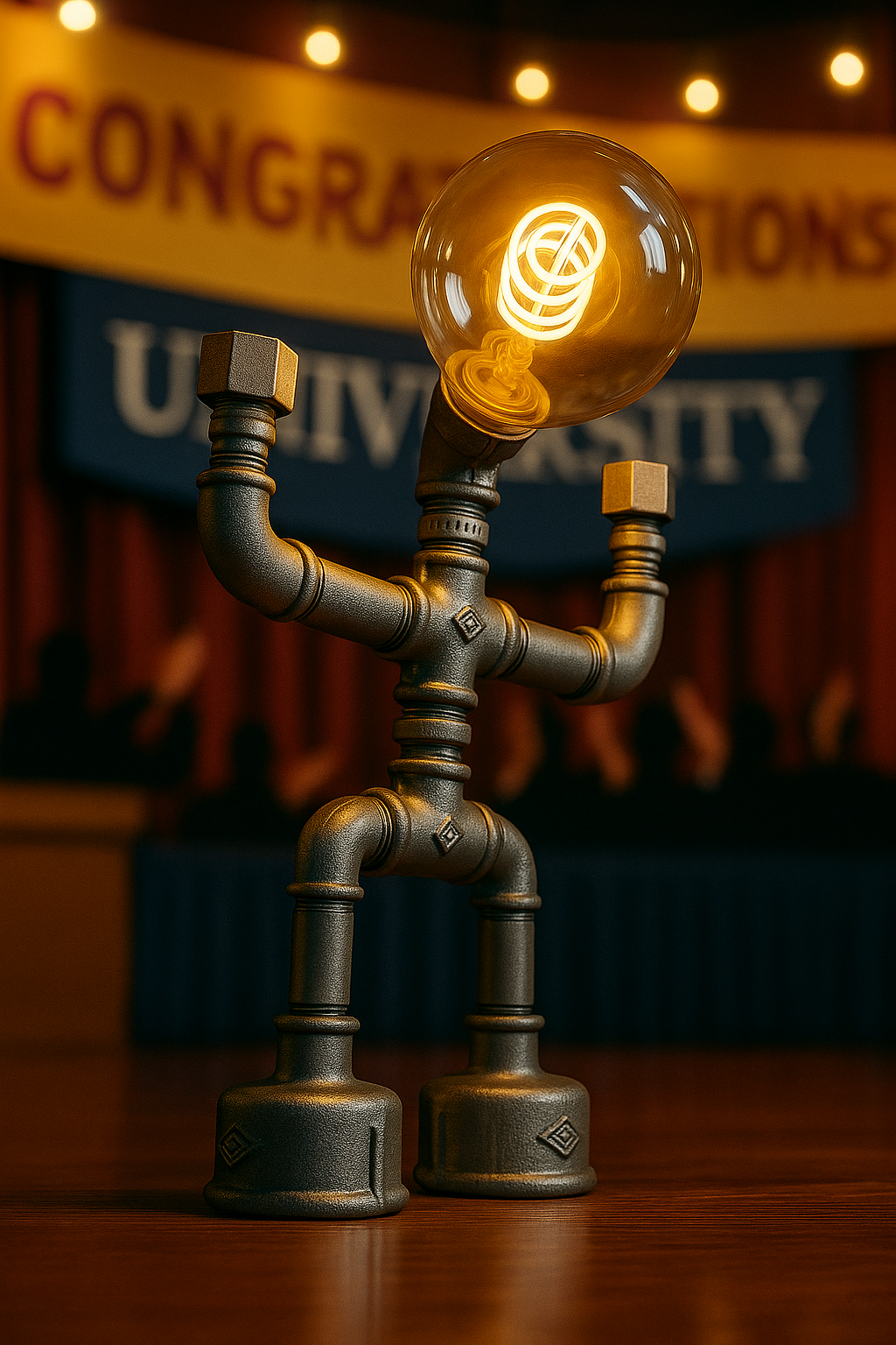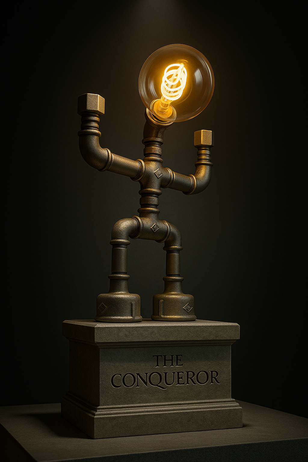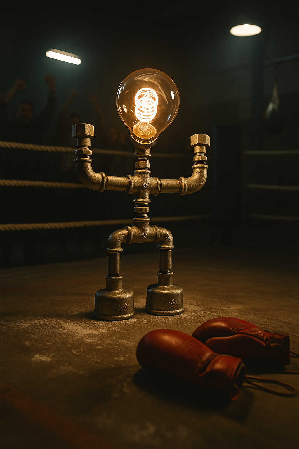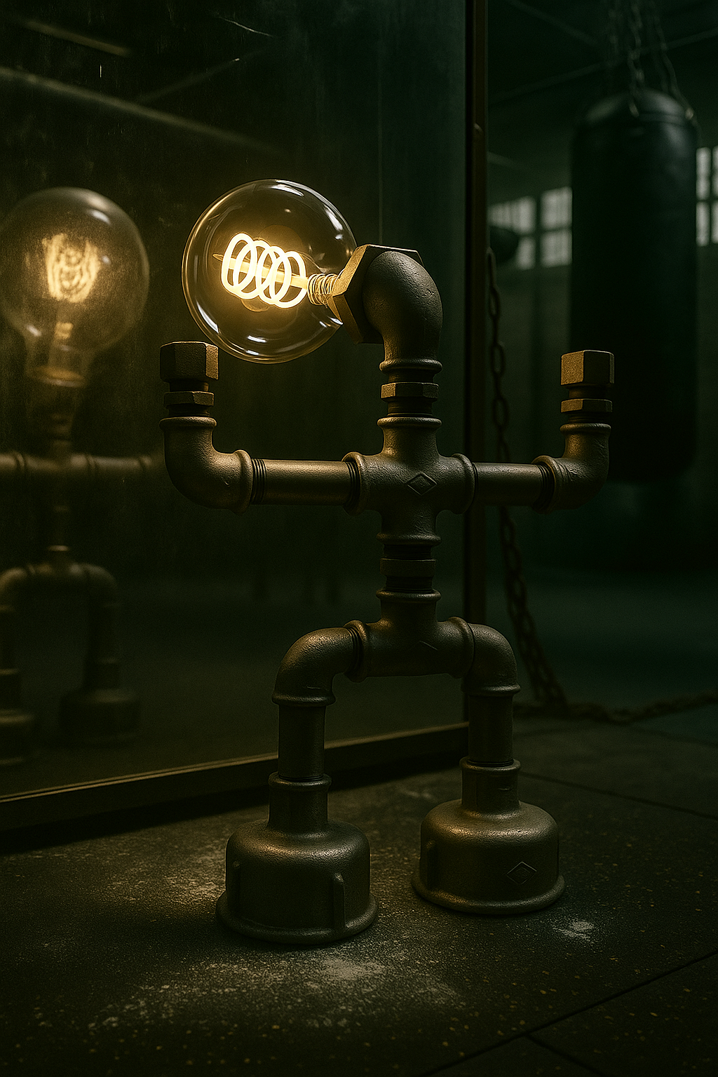 Deze industriële tafellamp is vervaardigd uit hoogwaardige messing en gegalvaniseerde stalen fittingen, zorgvuldig samengesteld tot een speels ontwerp. De robuuste materialen en warme metaaltonen geven de lamp een krachtige, authentieke uitstraling die perfect past bij industriële, loft- en retro-interieurs.